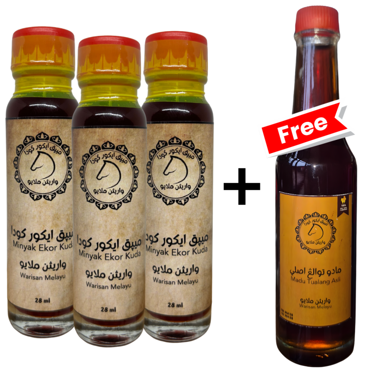 Bahan utama Ekor Kuda & Peluh Kuda dan kami menggunakan Minyak Zaitun Premium.